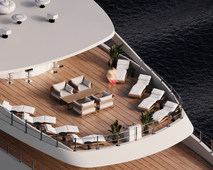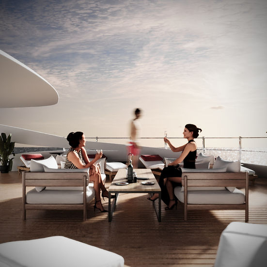 Large main saloon, upper saloon & outdoor lounges